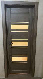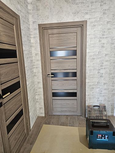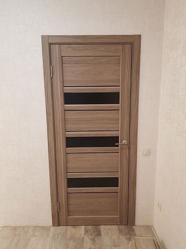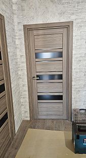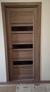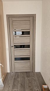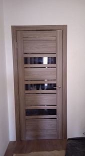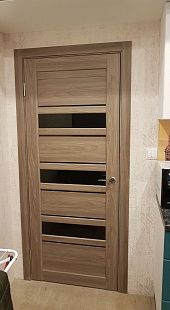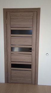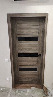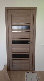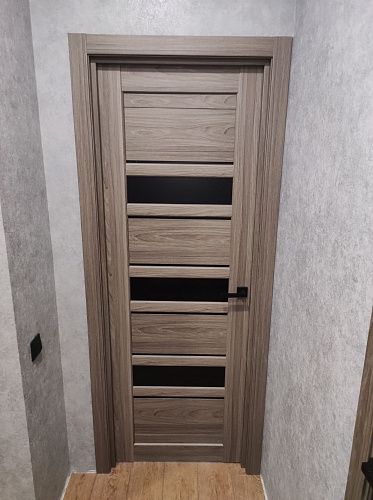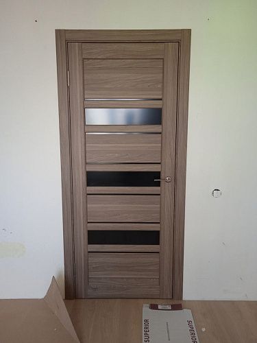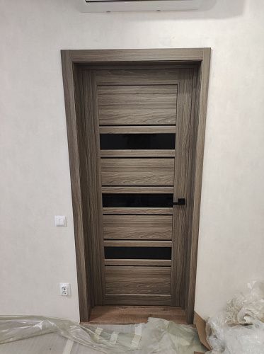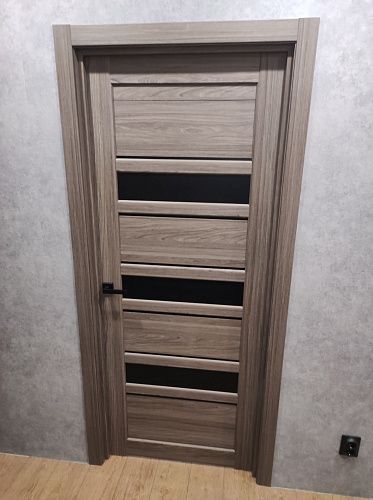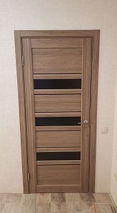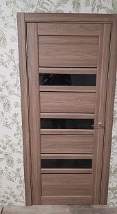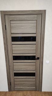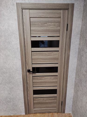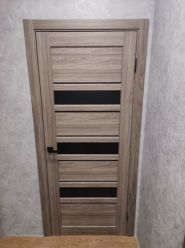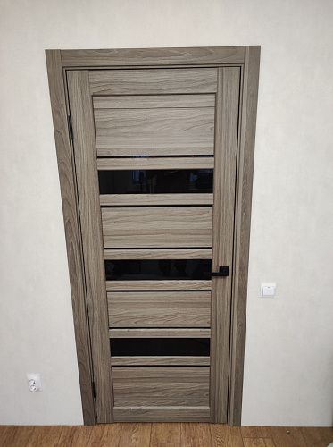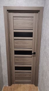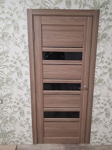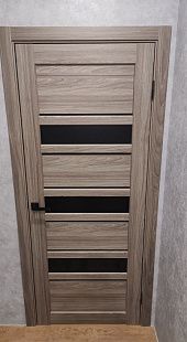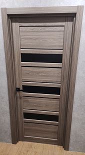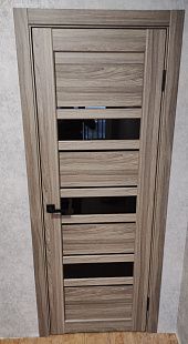 Дверь ПО Queen X3 Дуб тортора черное стекло из Экошпона COVERFLEX (Двери Нева) в Сосновом Бору с установкой и доставкой